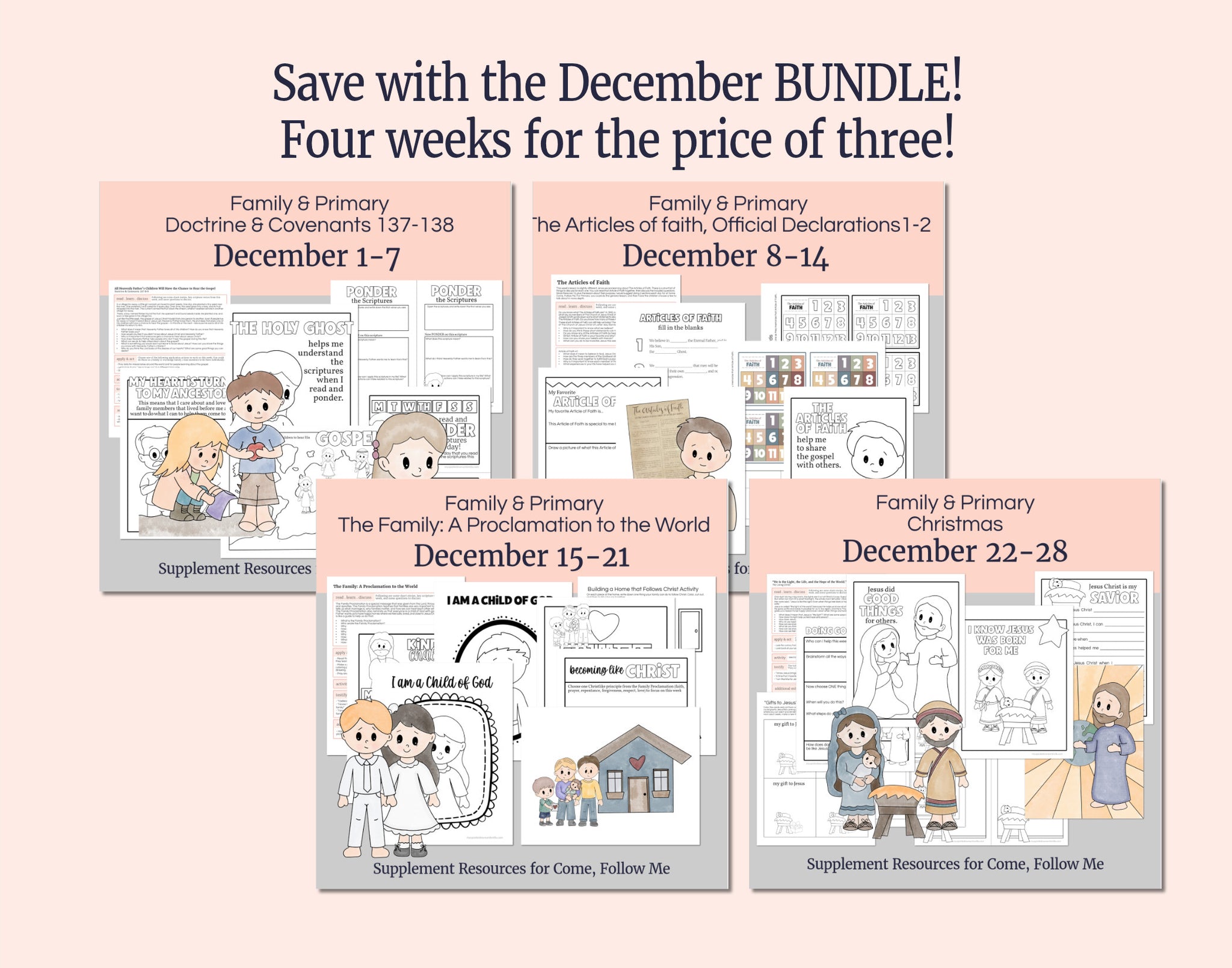 This December PRIMARY BUNDLE includes 4 weeks of lessons to supplement Come, Follow Me.