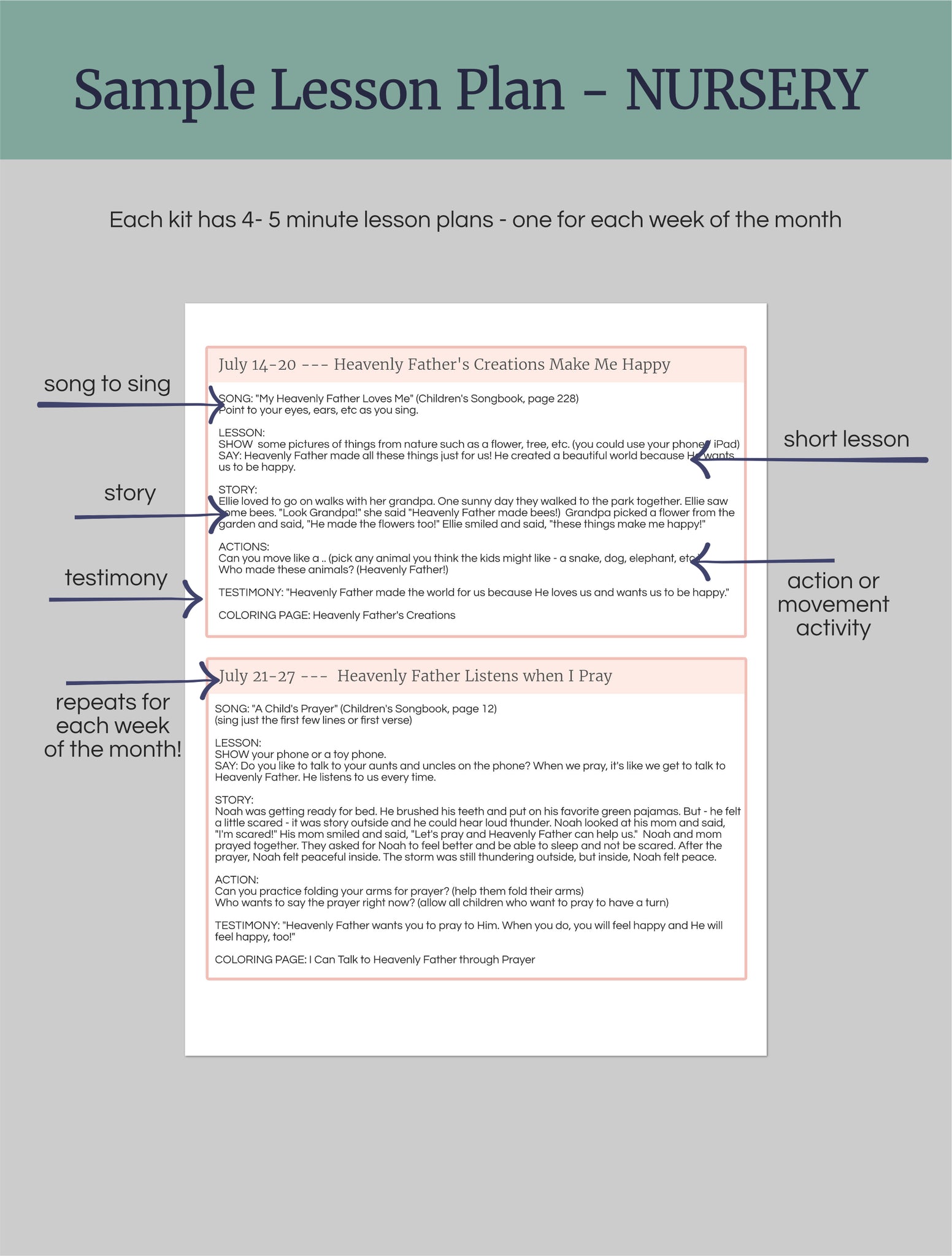 Built for wiggles, these 5 minute lesson plans are the perfect way to elevate your Nursery time beyond just toys!