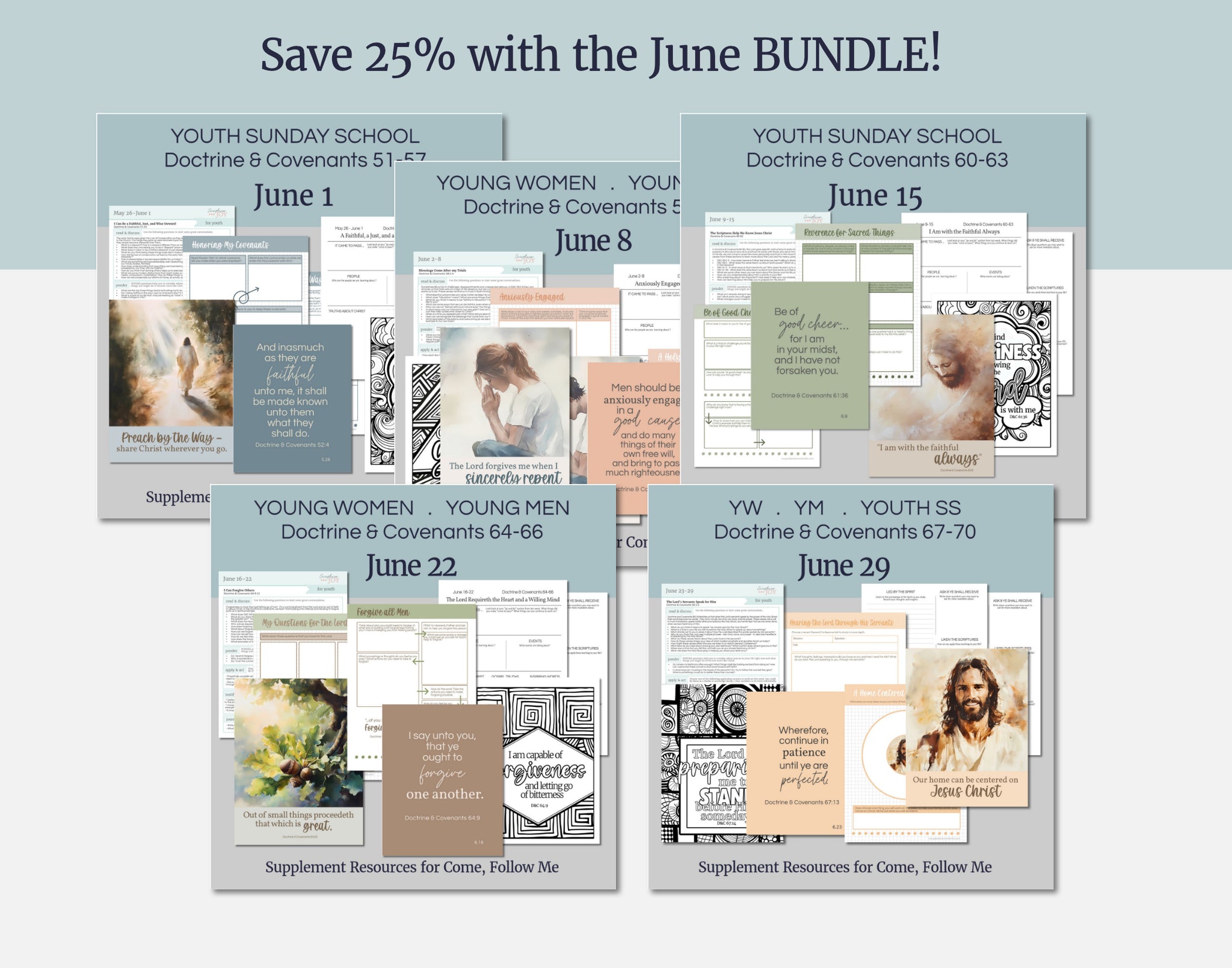 This JUNE YOUTH BUNDLE includes 5 weeks of lessons to supplement Come, Follow Me.