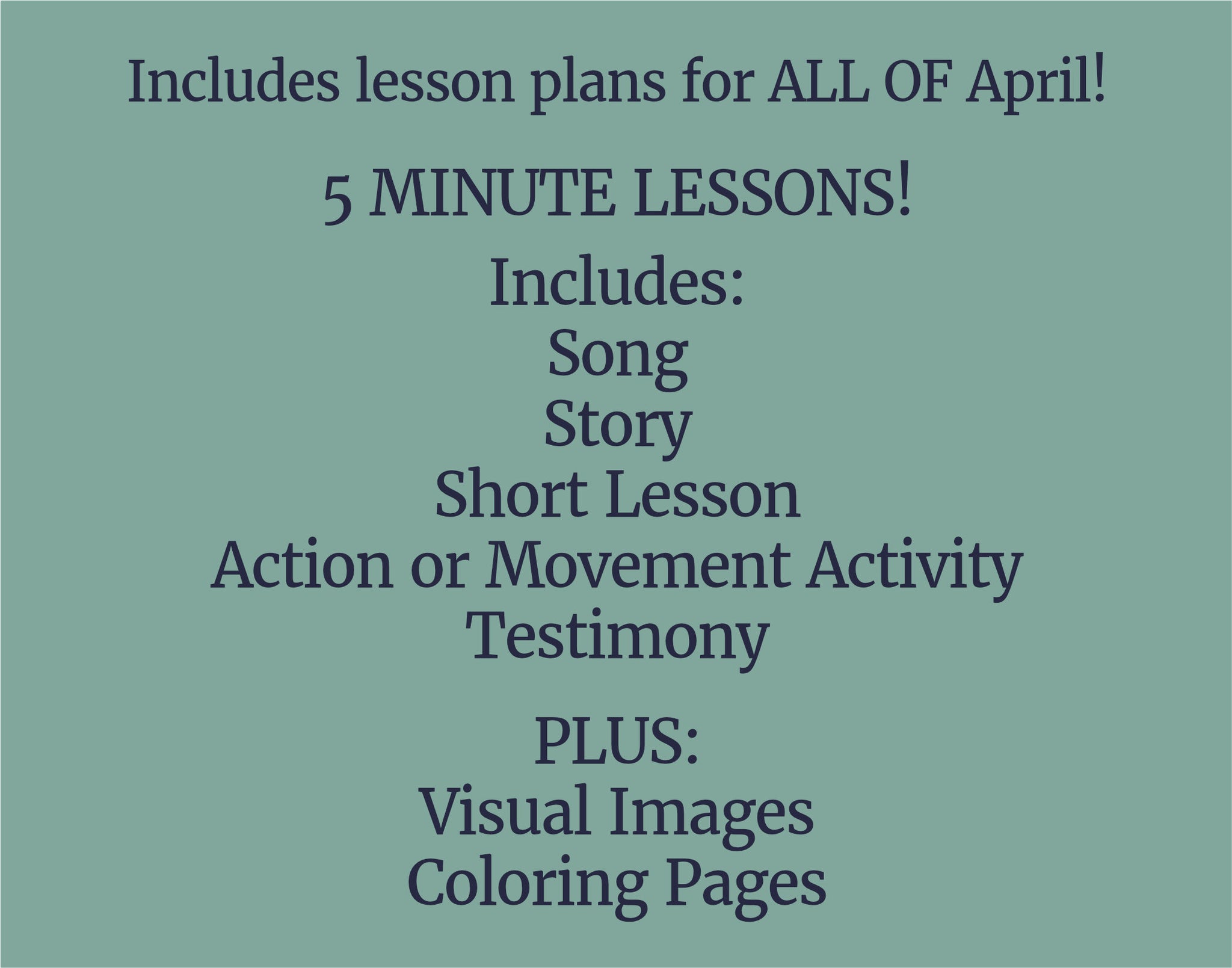 April Full MONTH NURSERY Lesson Helps (4 Lessons) Come Follow Me for Toddlers