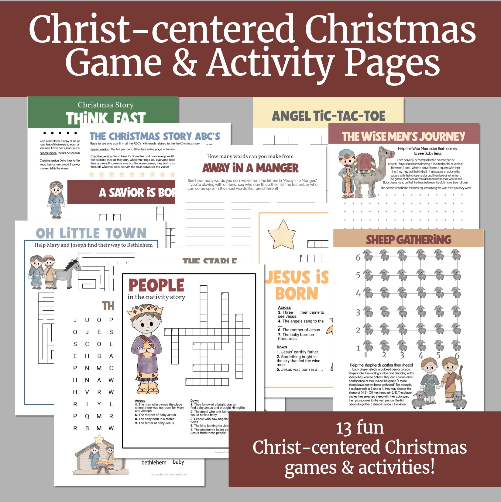 • Load image into Gallery viewer, printable nativity, games and activities for LDS families, Primary Activity day Christmas games, Christ-centered Christmas, Christian homeschool activities for Christmas,