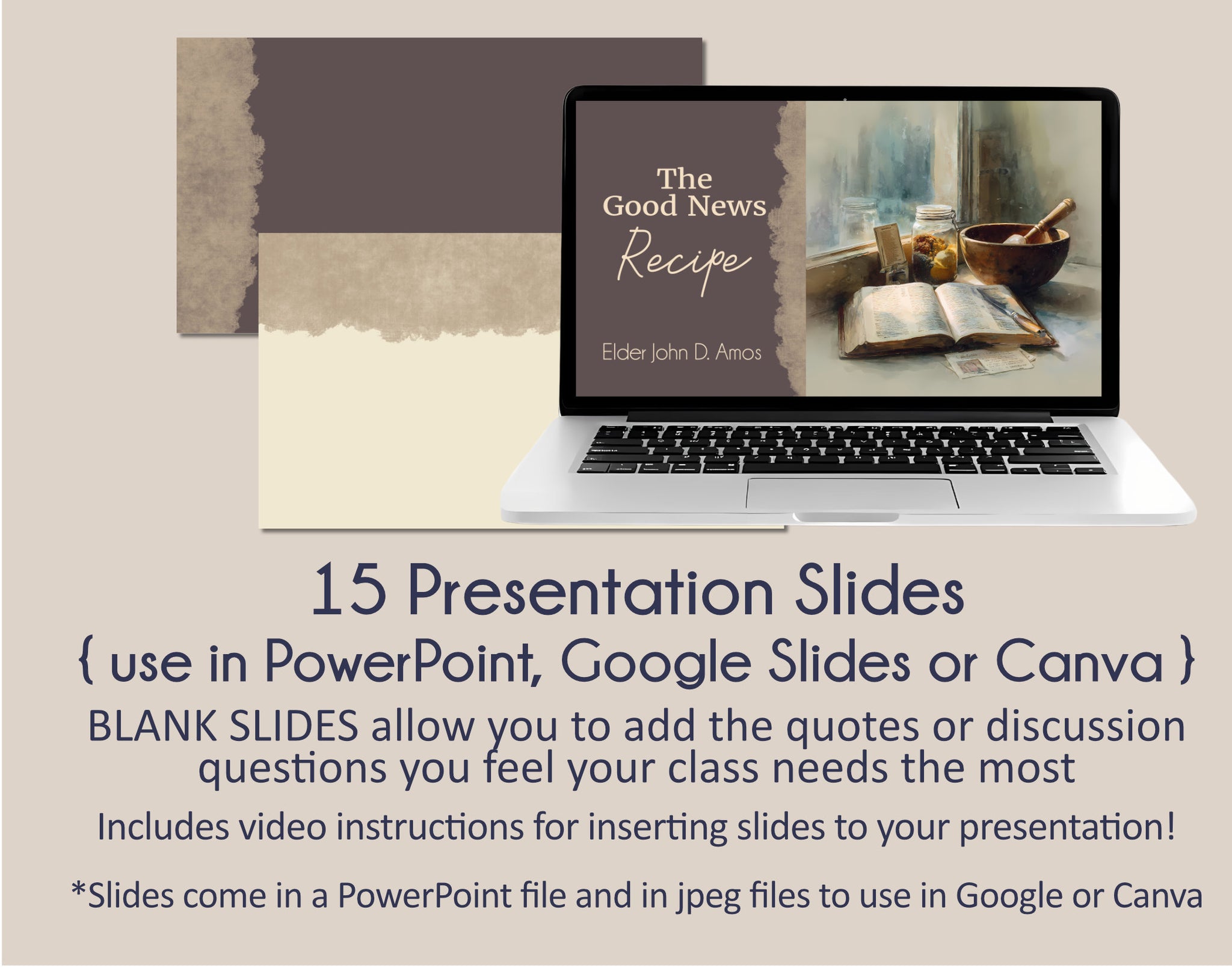 - 15 Presentation Slides in jpg format AND in a PowerPoint format