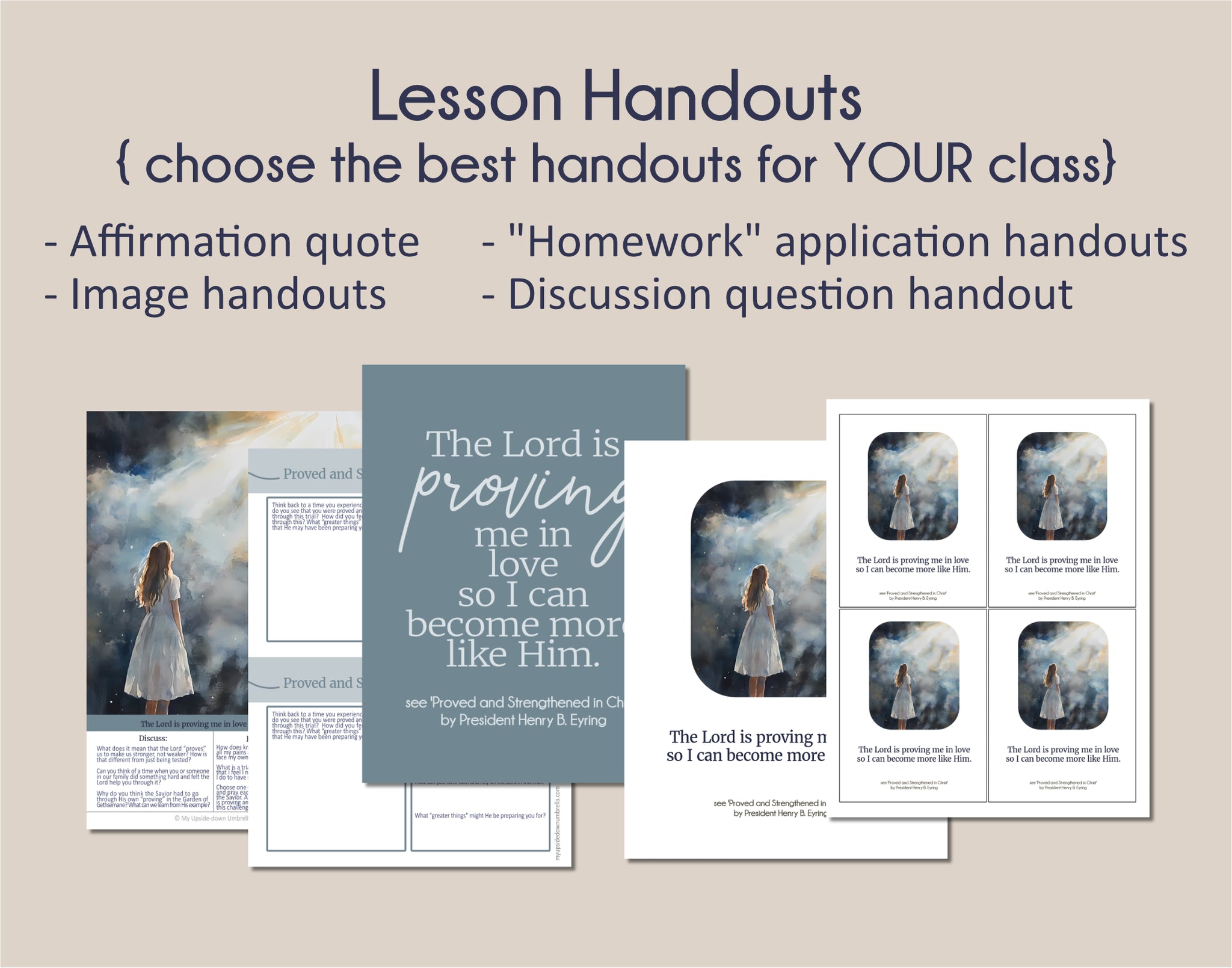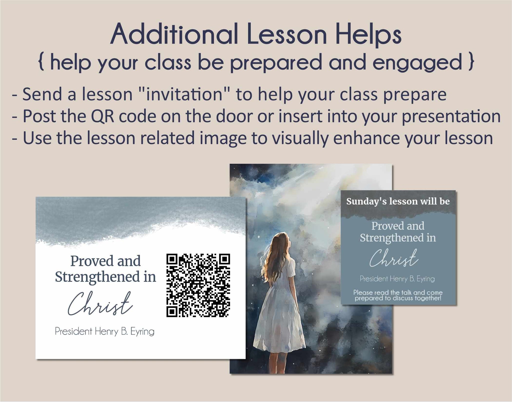 This kit also includes additional lesson helps: printable affirmation quotes, QR code, unique class handouts and a fun lesson “invitation.”