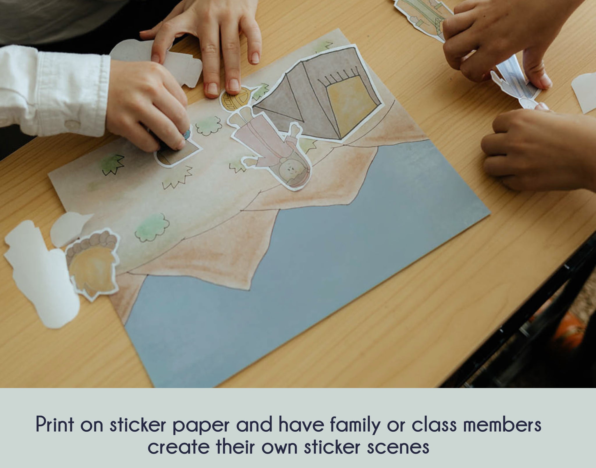 - Print on sticker paper and cut out to create your own scene (or use a glue stick)