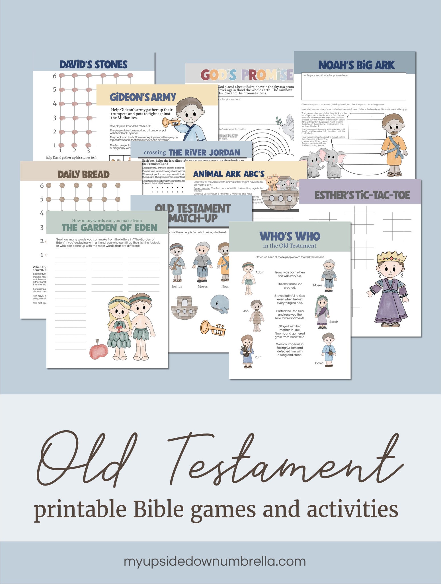 These activities can be printed and placed into a sheet protector, then use a dry erase maker to play them again and again for hours of Old Testament fun!