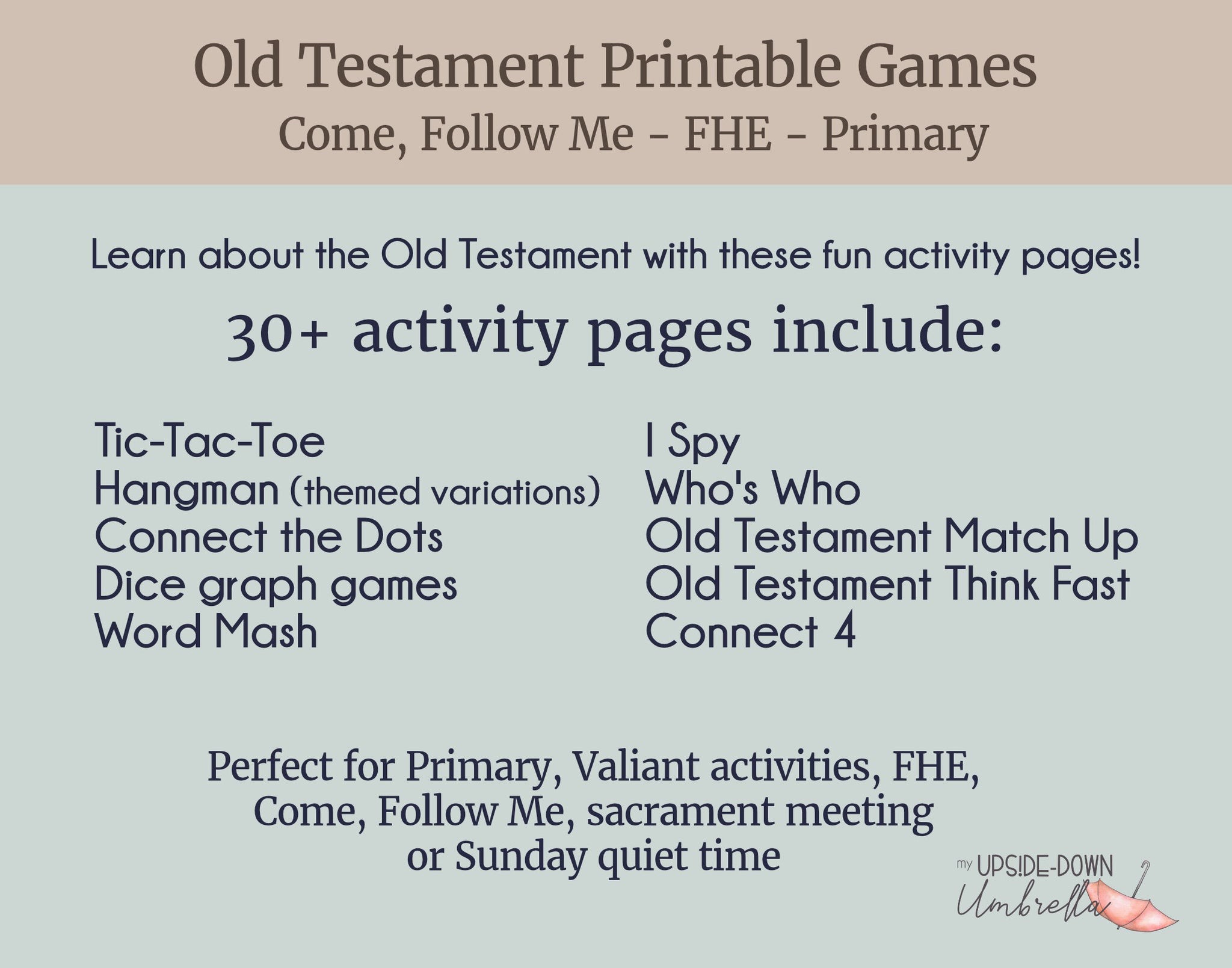 This fun Old Testament games and activities pack will help your family have fun as you learn more about the principles and people of the Old Testament in Come, Follow Me 2026.
