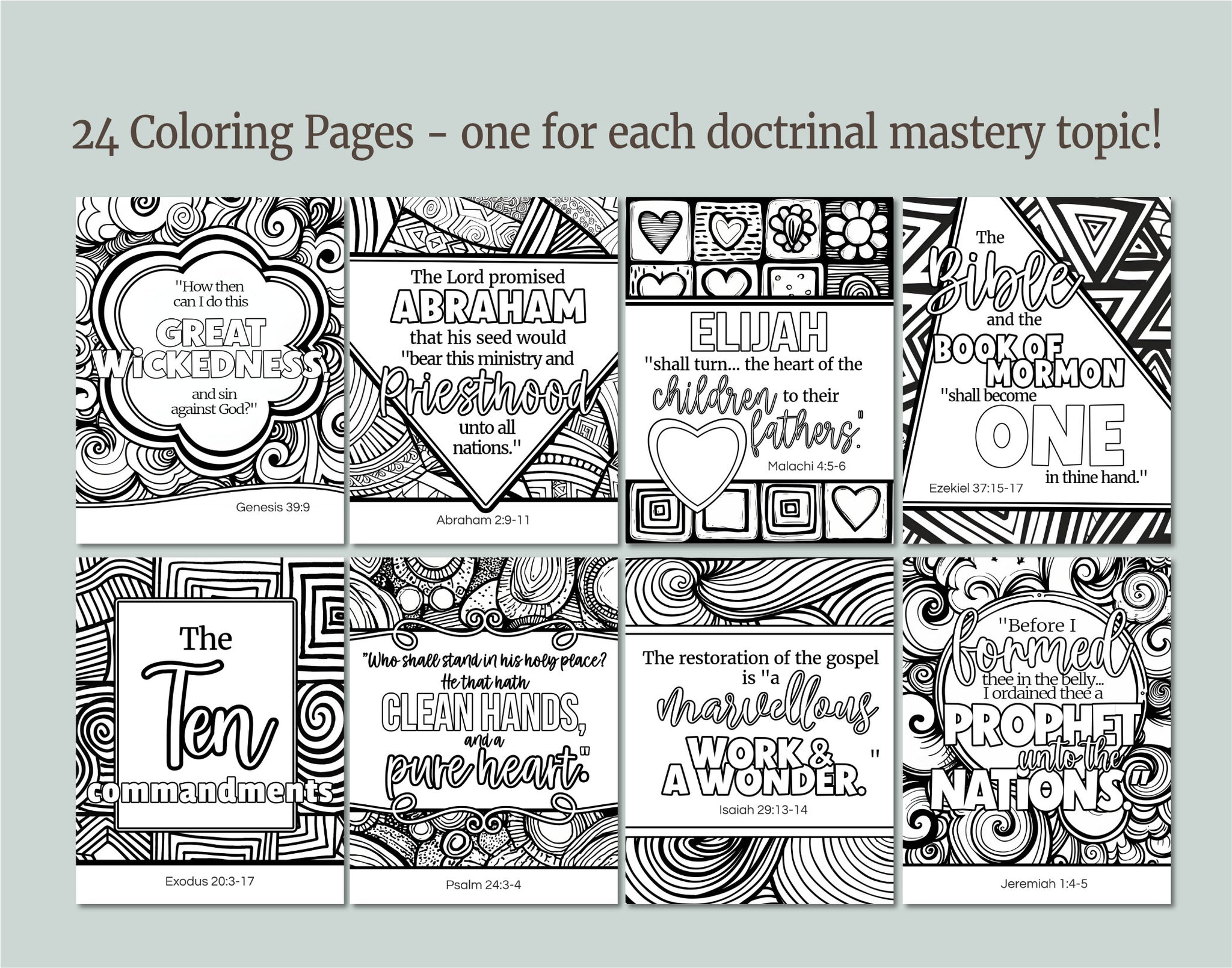 24 coloring pages included - one for each Doctrinal Mastery scripture.
