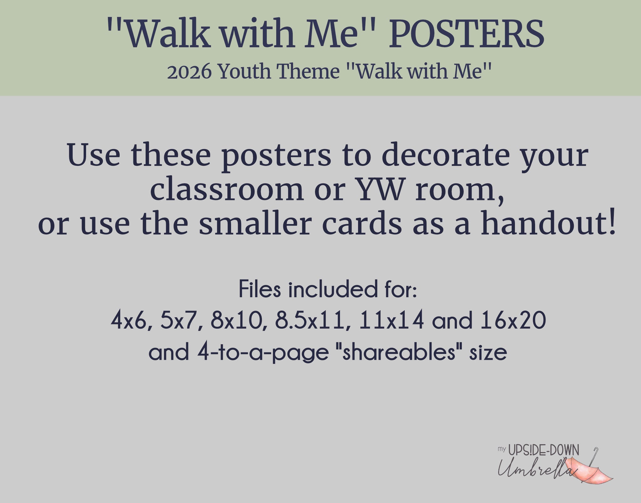 Display this adorable YW "Walk with Me" poster in your Young Women's room, or use the smaller options as a handout for your girls!