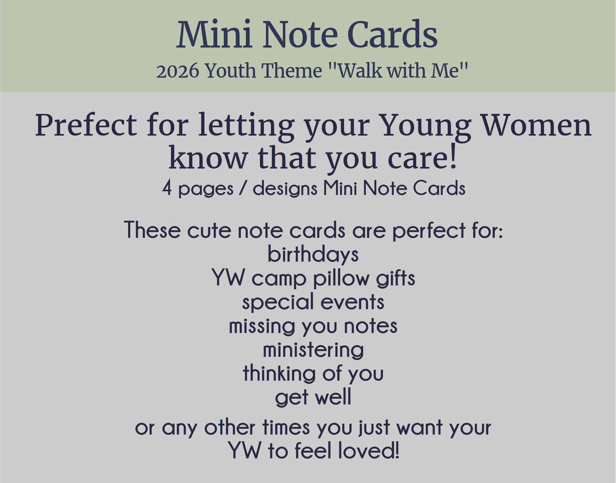 Walk with Me | Mini Note Cards for Young Women 2026 LDS Youth Theme