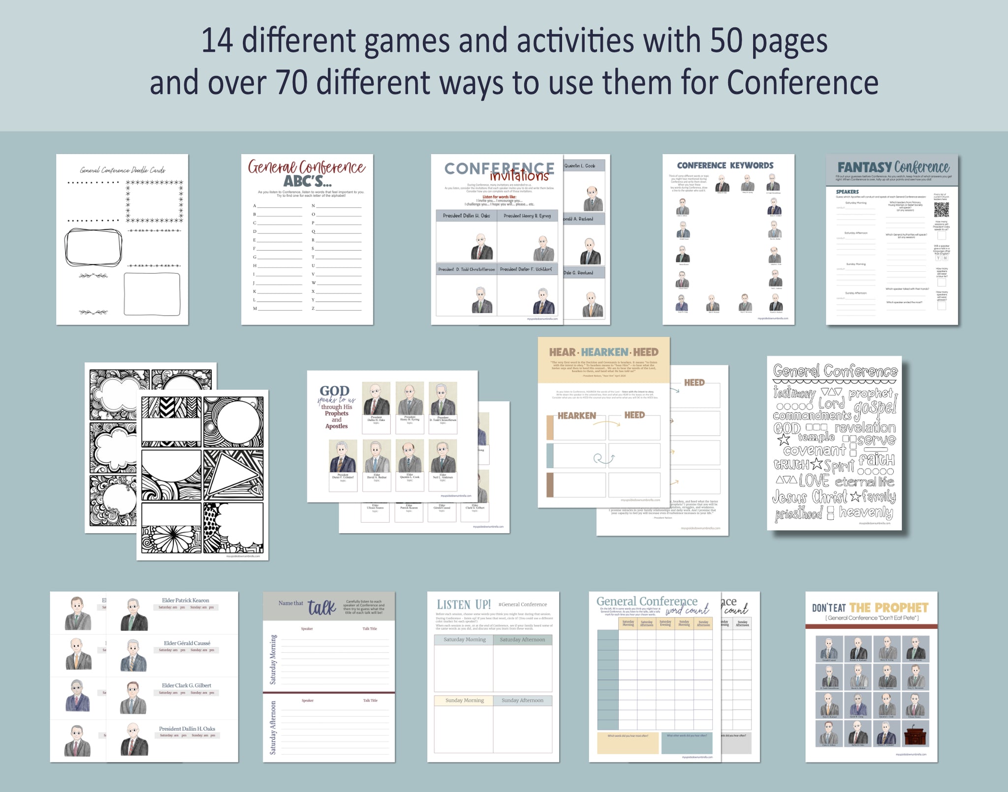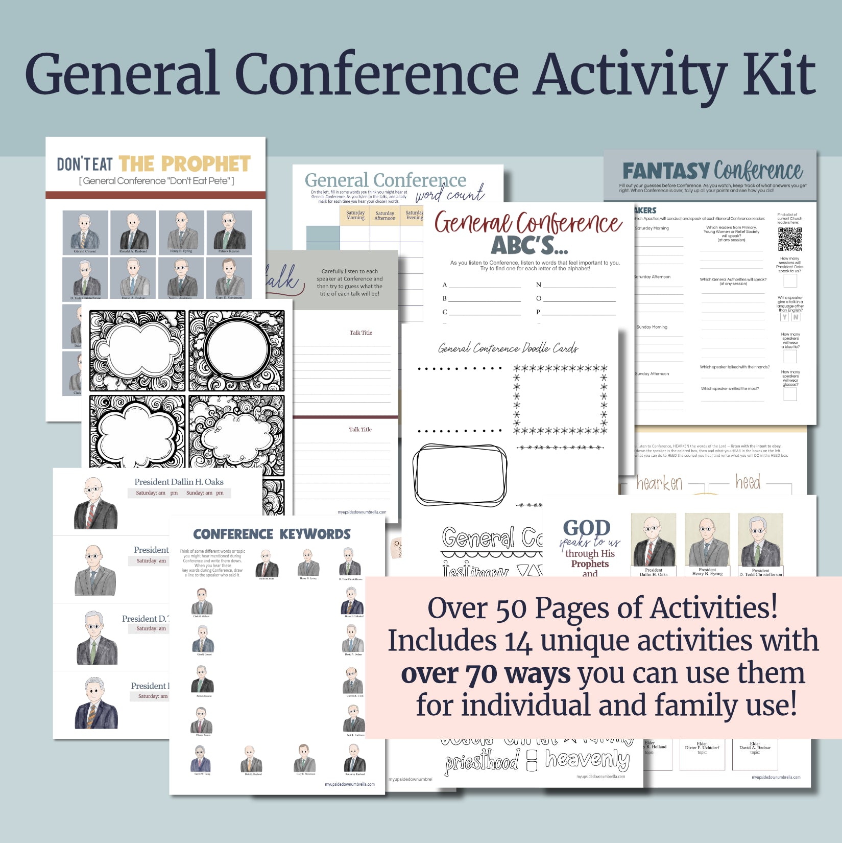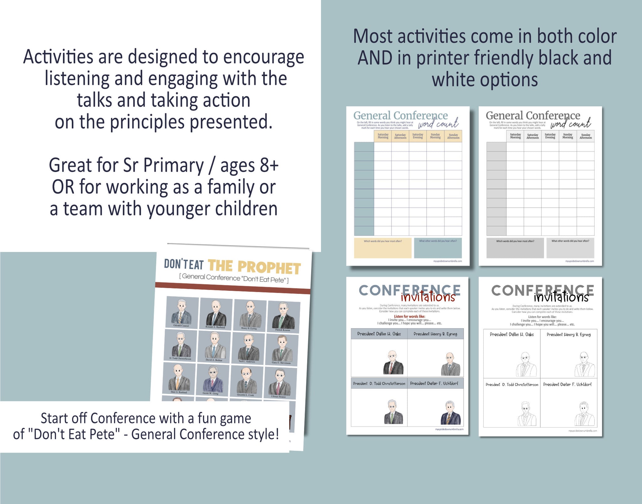 This bundle includes 14 fun, printable activities to help you PREPARE for, LISTEN to, and APPLY General Conference.
